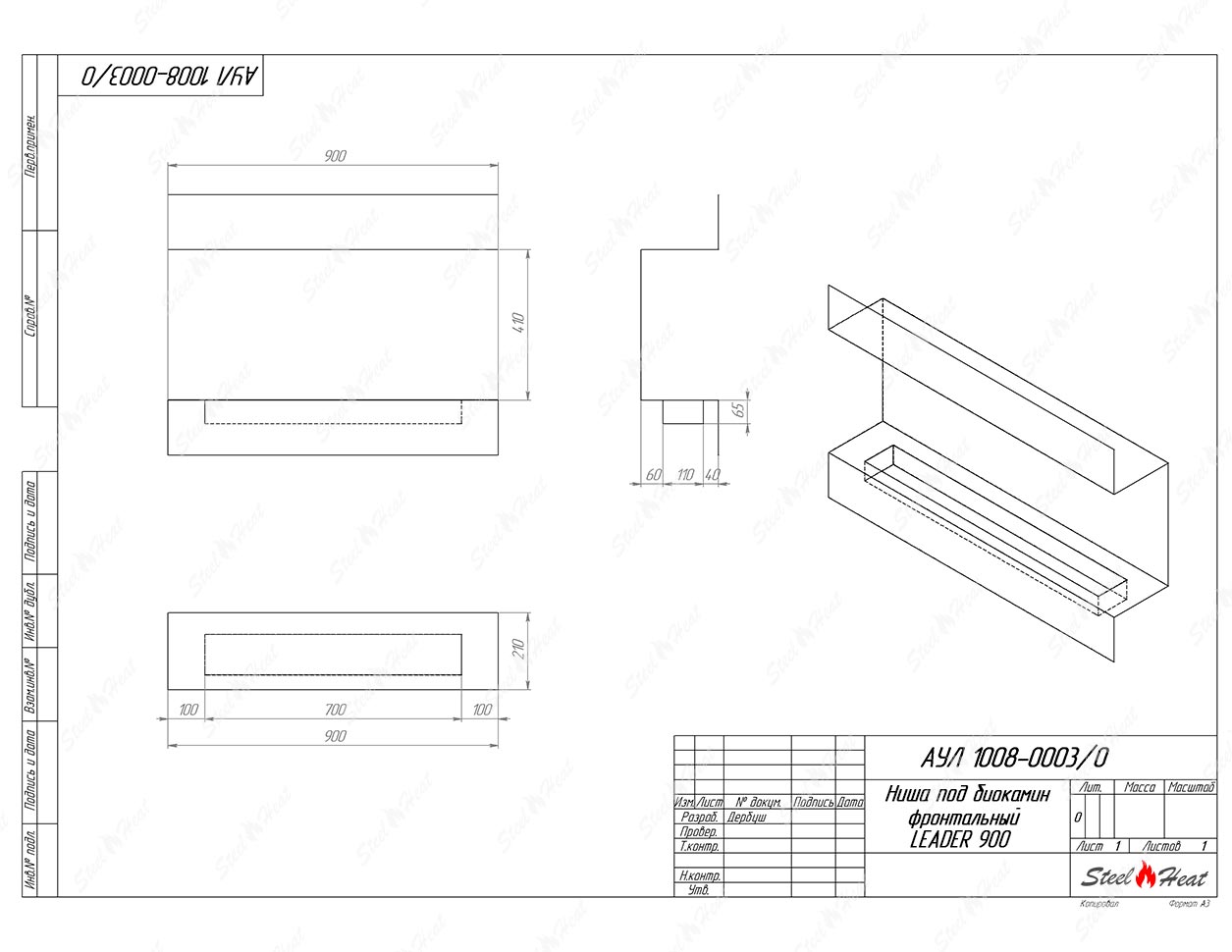 Встраиваемый Биокамин фронтальный SteelHeat Leader 900 предназначен для встраивания в глухие ниши из гипсокартона, кирпича, пеноблоков, бетона.