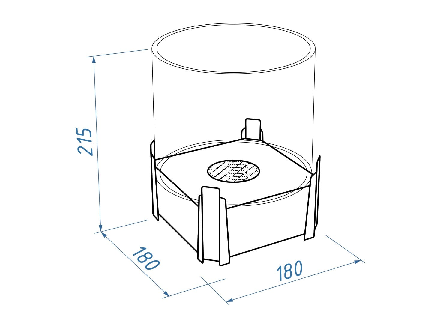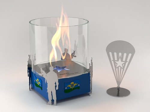 Представляет собой металлический внешний корпус с встроенным топливным блоком Lux Fire 150-2 на декоративных ножках в виде Десантников. Огонь ограничивается стеклянным закаленным плафоном диаметром 180 мм.