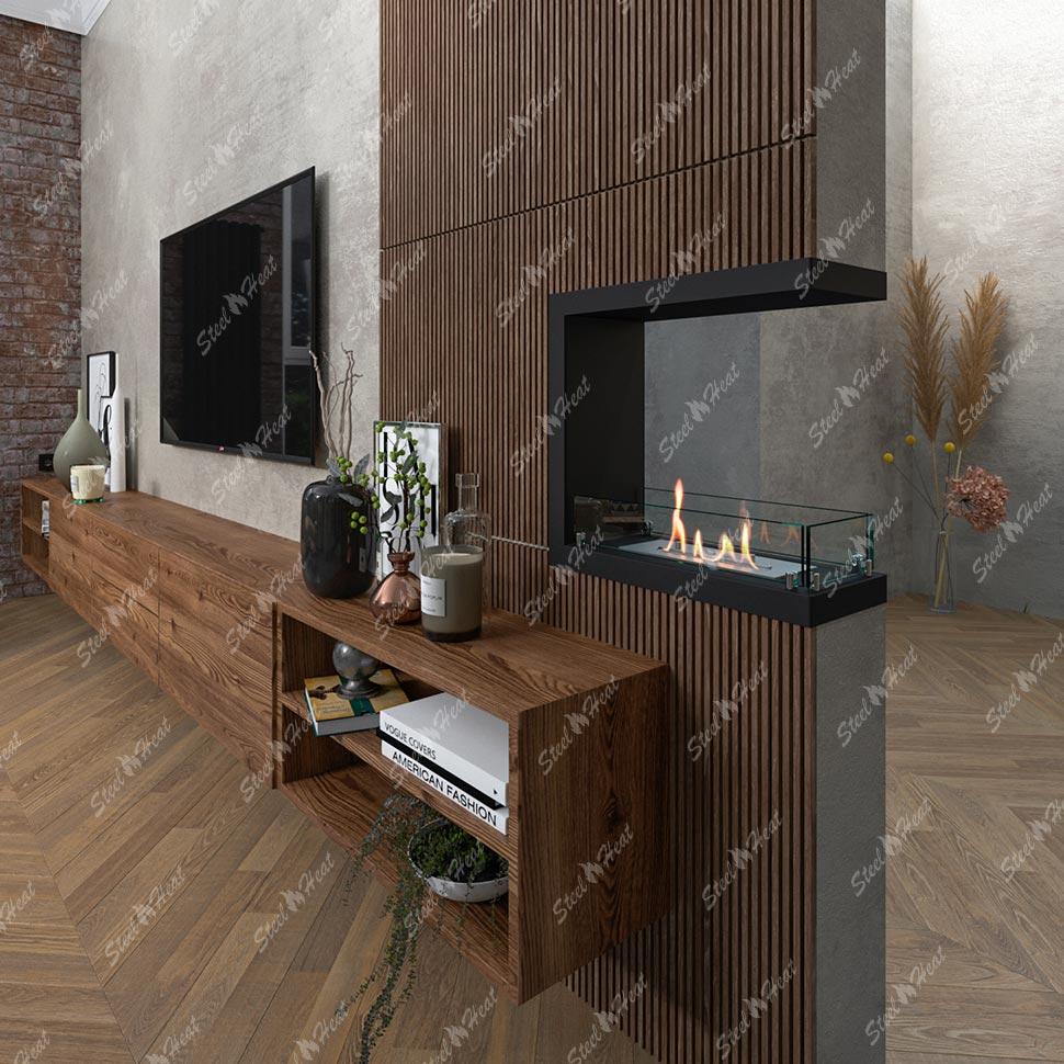 Встраиваемый Биокамин торцевой SteelHeat Leader 500предназначен для встраивания в глухие ниши из гипсокартона, кирпича, пеноблоков, бетона.